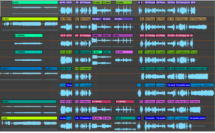 flutter is about the sounds that were originally on cassettes, either as recordings of kids or music on mixtapes. Originally this piece was thought of as a sound installation but ended up as a fixed-media piece. Making it fixed media allowed for me to have more control over the material. I do enjoy unpredictability in my works but only up to a certain point. This work is not focusing on the unpredictability of the cassette players but on the sound material that exists on the cassettes. Therefore, having it be fixed media is better for now but I am planning to create an installation version of this piece. When I started composing this piece, I meant for it to be performed on an eight- channel speaker system at my graduation concert in June 2020. Because of the unforeseen circumstances caused by Covid-19, I had to change this plan. I composed the piece using headphones and the ambisonic plugin Ambeo Orbit by Sennheiser.